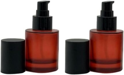 2 Pcs 30ml 1oz Wine Red Matte Glass Pump Bottles Travel Bottles Containers for Toiletries Leakproof Lotion Pump Dispenser Bottles Lotion Soap Dispenser Cosmetics Containers Jar Vial with Black Pump