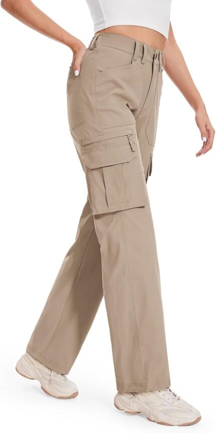 Moosehill Women’s-Cargo-Hiking-Pants-High-Waisted Wide Leg Water Resistance Lightweight Stretch for Work Casual Outdoor