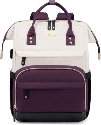 LOVEVOOK Laptop Backpack Purse for Women Men, Nurse Work Business Travel Backpack Bag, Wide Open Backpack, Lightweight Water Resistent Daypack with USB Charging Port, 15.6 inch, Beige-Purple-Black