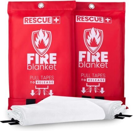 Emergency Fire Blankets – 2 Pack, 40” x 40” Fiberglass Flame Retardant Safety Blanket for Home, Kitchen, Workplace, Travel, Camping, and Car Emergencies