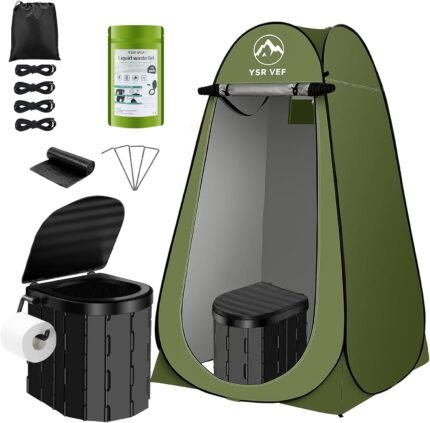 Portable Toilet Kit, Camping Toilet with Pop-Up Privacy Tent and Poo Gel Toilet Bags, Washable Portable Outdoor Showers Changing Rooms