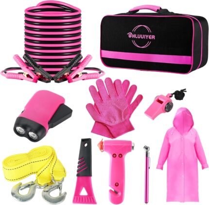 Price: (as of – Details) Product Description 【PINK CAR EMERGENCY KIT】 BHLUUIYER roadside emergency car kit comes with all the