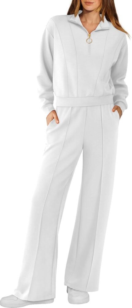 RUBZOOF Womens 2 Piece Outfits Sweatsuit Half Zip Sweatshirt Tracksuit Sweatpants Lounge Sets XS-2XL