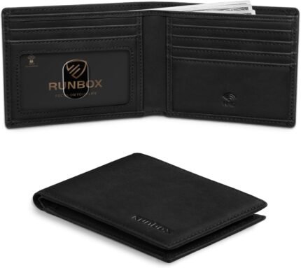 RUNBOX Wallet for Men,Mens Wallet,Slim Leather Bifold,RFID Blocking 8 Slots Gift Box