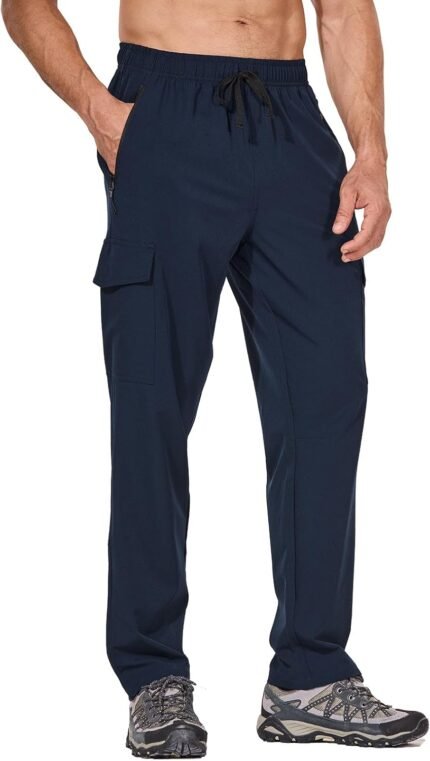 baleaf Men’s Hiking Pants Water Resistant Cargo Quick Dry Travel Elastic Waist with Zip Pockets UPF 50+ for Work Running