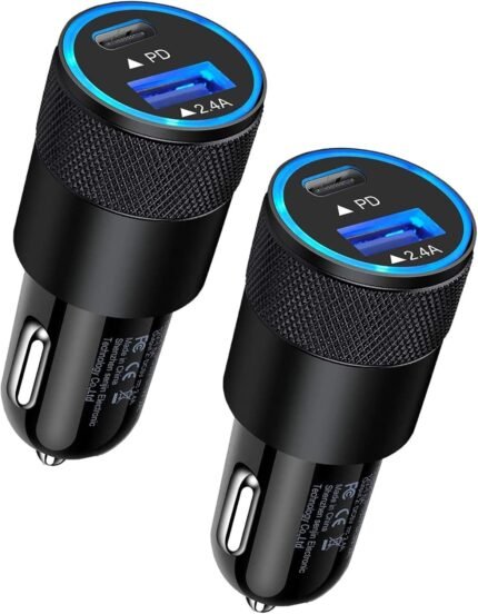 30W USB C Car Charger, [2Pack] PD 3.0 Fast Charge Dual Port USB Type C and 2.4a USB A Cargador Carro Lighter Adapter Base for iPhone, iPad, Samsung Galaxy, LG, Google Pixel GPS, Z Play Droid, Motorola