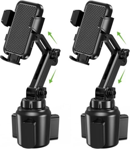 2025 Upgraded Cup Phone Holder for Car, Universal No Shaking Cup Holder Phone Mount with Expandable Base for Car Truck, Adjustable Holders,Compatible with iPhone Samsung All Phones: 2 Pack
