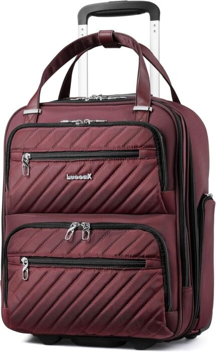 LUGGEX Underseat Carry On Luggage with Wheels, Stylish Lightweight Under Seat Luggage, Soft Sided Personal Item Suitcase for Short Trip (Dark Scarlet, 16 Inch)