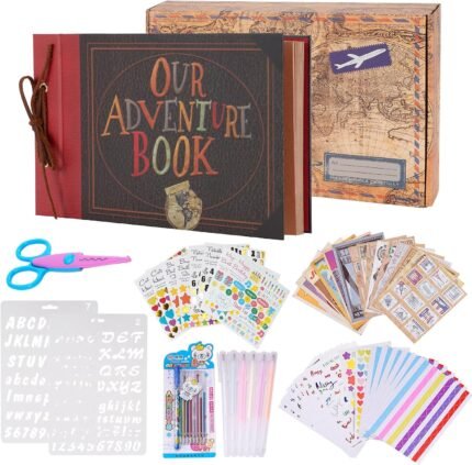 Adventure Book Scrapbook Album 11.9 X 7.6 Inch 80pages,3d Retro Embossed Letter Hard Cover Movie Up,Rich Accessories Included,DIY Album for Anniversary,Wedding,Travelling,Friends,Christmas gifts