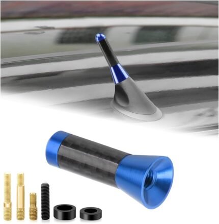 Car Short Antenna, 1.37″ Stubby Aluminum Radio Antenna Replacement with Screws Gaskets, Vehicle Roof Carbon Fiber Mini Aerial Antennas for AM/FM Reception, Car Accessories (Blue)