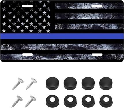 Vintage American Flag License Plate, Personalise Funny Patriotic USA Flag Car Tag with Screws, Aluminum Classic US Flag License Plate Vanity Tag for Car Decoration (Black & Blue)