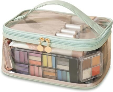 MHCNLL Clear Makeup Bag TPU Large Travel Makeup Organizer with Separate Brushes Compartment & Handle Multipurpose Portable Toiletry Bag for Women (green)