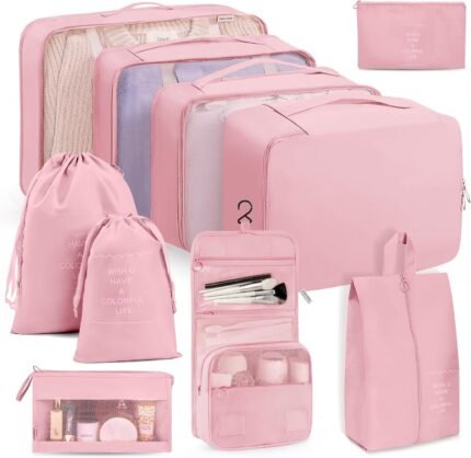 Packing Cubes 11 Set, Suitcase Organizers, Luggage Organizer Bags for Travel, Packing Cubes for Travel, with Toiletry Bag, Travel Essentials,Pink