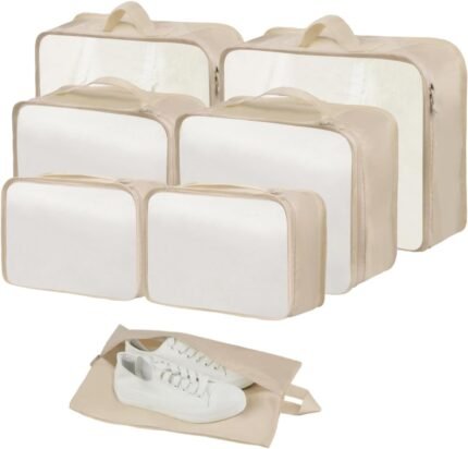 Packing Cubes, 7 Pcs Travel Packing Organizers for Suitcases, Large Capacity Travel Luggage Organizer Set includes 7 Storage Bags, Travel Essentials for Women or Men (Beige)