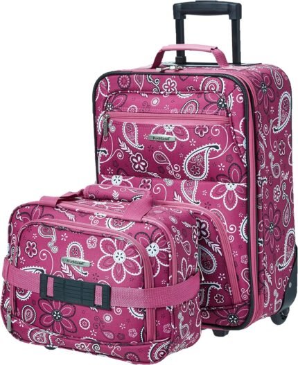 Rockland Fashion Softside Upright Luggage Set, Expandable, Wheel, Telescopic Handle, Pink Bandana, 2-Piece (14/19)