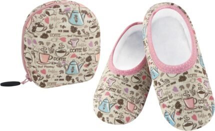 Snoozies Skinnies Packable and Foldable Travel Slippers for Women with Zipper Pouch, Soft Sherpa-Lined Slipper Socks Non-Skid