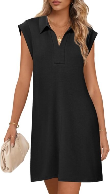 MEROKEETY Women’s 2025 Summer Short Sleeve Mini Dress Casual Collared V Neck Loose T Shirt Dresses