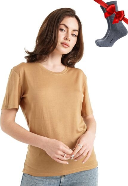 Merino.tech Merino Wool T Shirt Women – 100% Merino Wool Base Layer Women Short Sleeve Moisture-Wicking Tee and Hiking Socks