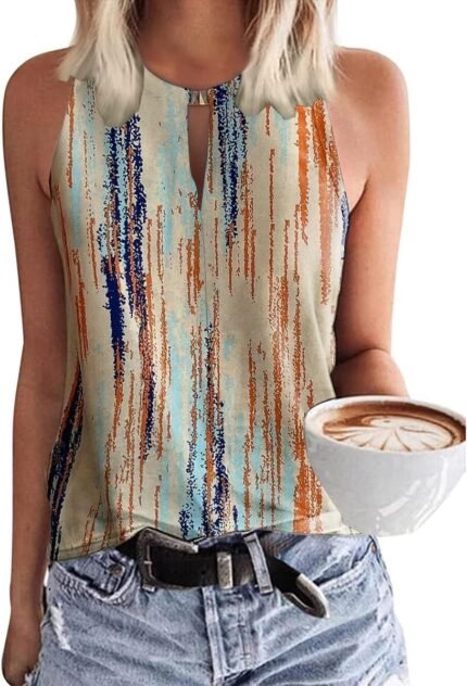 Soesdemo Tank Top for Women Keyhole V Neck Sleeveless Summer Casual Loose Fit Business Cute Floral Basic Shirt Blouse
