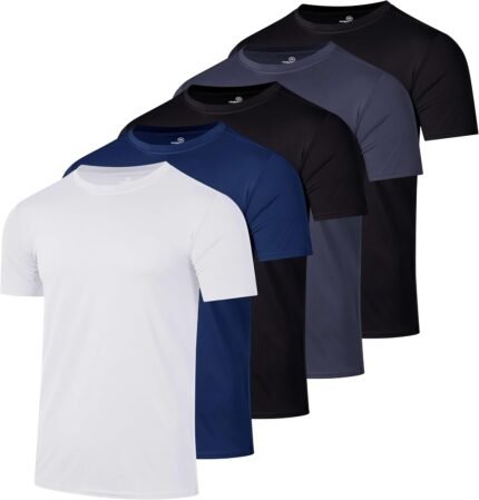 Real Essentials 5 Pack: Men’s Short Sleeve Dry Fit Active Crew Neck T Shirt – Athletic Running Gym Workout Tee Tops