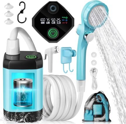AUTOPkio Portable Camping Shower, Upgraded Rechargeable Battery Shower Pump with 3 Modes, LED Display, 8.0L/min Electric Outdoor Shower Kit for Travel, Car, Pet Washing, Emergency