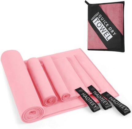 Quick Dry Travel Towel, 3 Sizes 1 Pack Camping Microfiber Towel, Lightweight Fast Drying Towels Set 60″x30″, 30″x15″, 15″x15″ w/Bag for Gym, Beach, Hiking, Swimming, Pink