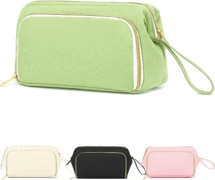 Travel Makeup Bag, Waterproof Canvas Cosmetic Bag Make Up Organizer Case for Women, Large Toiletry Bag Skincare Pouch for Toiletries Accessories Brushes
