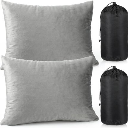 2 Pack Camping Pillow for Sleeping Shredded Memory Foam Travel Pillow with Storage Bag, Compressible Portable Pillow for Outdoor Camp Backpacking Hiking Essential Gear (Grey,Small)