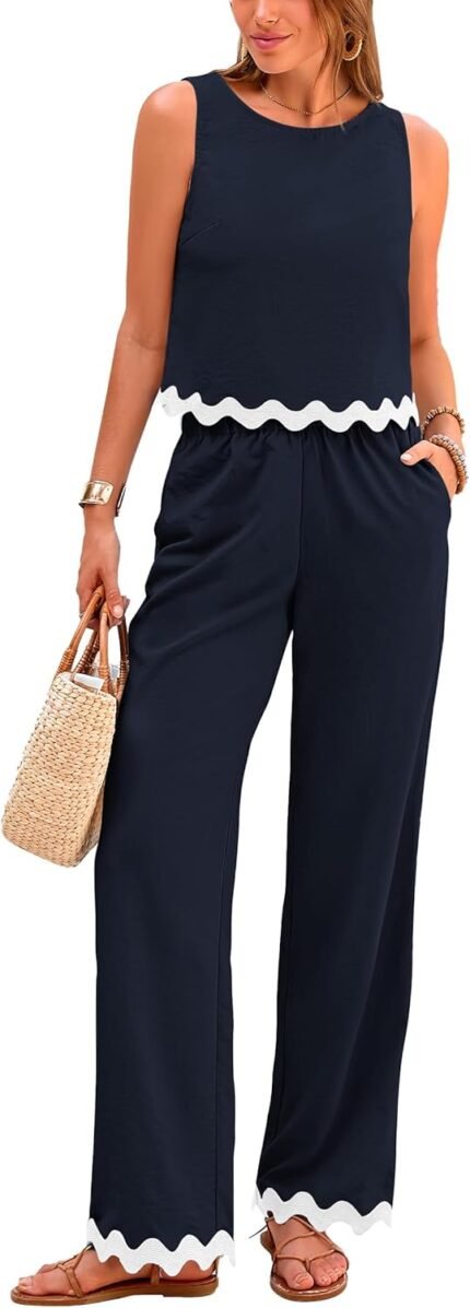 PRETTYGARDEN Women’s Summer Casual 2 Piece Outfits Sleeveless Tank Crop Top Wide Leg Pants Sets Tracksuit