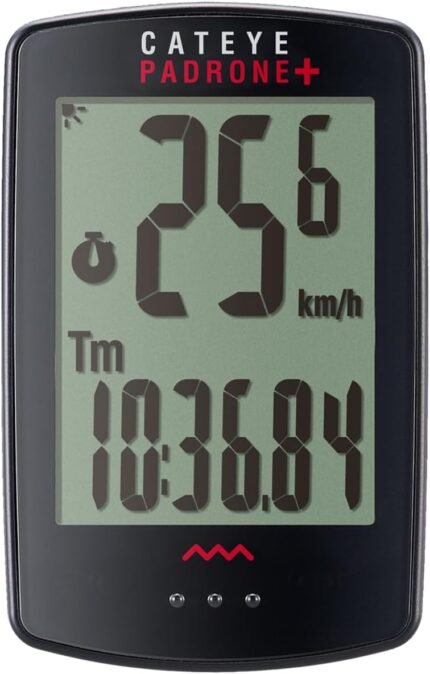CATEYE Padrone Plus Bike Computer – Oversized Display Cyclocomputer, Wireless Speedometer & Odometer, FlexTight™ Mount, Auto Start/Stop, Programmable Odometer, Backlight Display with Night Mode
