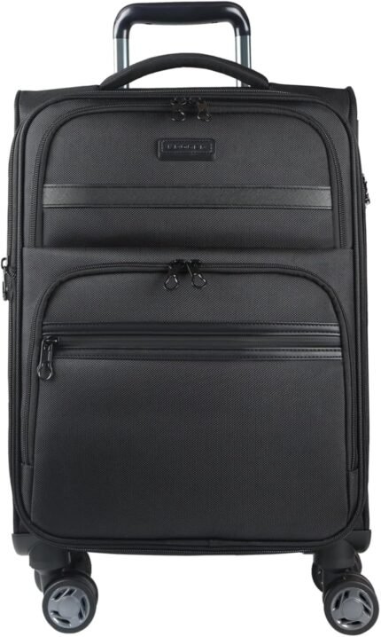 KROSER Softside Expandable Carry On Luggage with Spinner Wheels & Built-in TSA Lock, Durable Suitcase Rolling Luggage with USB Port, Carry-On 20-Inch, Black