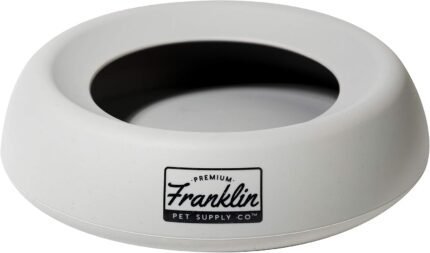 Franklin Sports Spill Proof Portable Pet Bowl For Cars – No Splash Travel Water + Food Dish for Dogs + Cats – 16 oz. – BPA Free,White , Gray