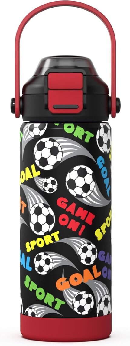 Boys Insulated Water Bottle with Pop-Open Straw & Spout 2-in-1 Lid,18oz Kids Cups with Stainless Steel Leak Proof for School Travel Boys Girls(Football)