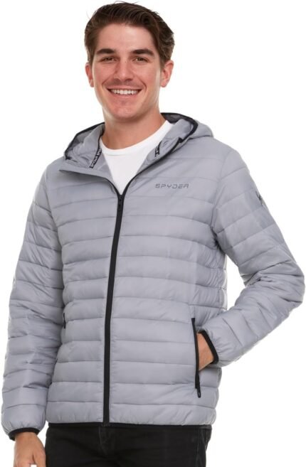 Spyder Packable Puffer Jacket Men with Hood, Lightweight Winter Jackets for Men