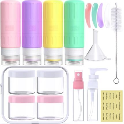 GLAMFIELDS Travel Bottles for Toiletries,TSA Approved 3.3oz Size LeakProof Silicone Toiletry Containers for Shampoo, Conditioner,Easy to Squeeze,Portable Travel Essentials for Lotion(18 Pack) Macaron