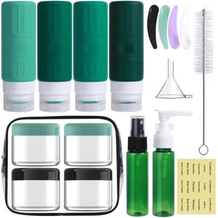 GLAMFIELDS Travel Bottles for Toiletries,TSA Approved 3.3oz Size LeakProof Silicone Toiletry Containers for Shampoo, Conditioner,Easy to Squeeze,Portable Travel Essentials for Lotion(18 Pack) Green