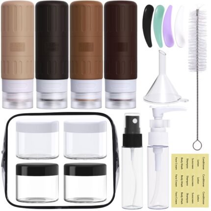 GLAMFIELDS Travel Bottles for Toiletries,TSA Approved 3.3oz Size LeakProof Silicone Toiletry Containers for Shampoo, Conditioner,Easy to Squeeze,Portable Travel Essentials for Lotion(18 Pack) Coffee