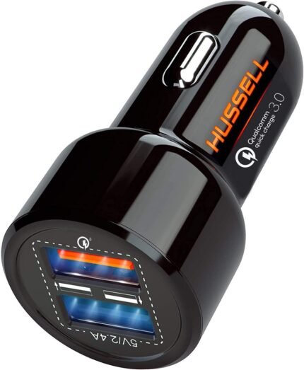 Hussell Car Charger Adapter – 3.0 Portable USB w/Fast Charge Technology & Dual Ports – Compatible w/Apple iPhone, Android, Tablet or Other USB Device – White Elephant, Stocking Stuffers