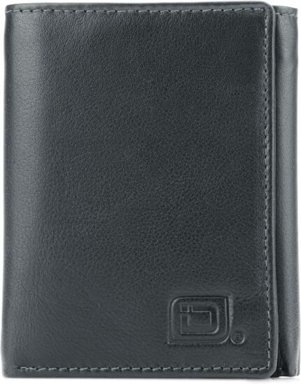 ID Stronghold Men’s Leather Trifold Wallet – RFID Blocking – Black Wallet with Gift Box