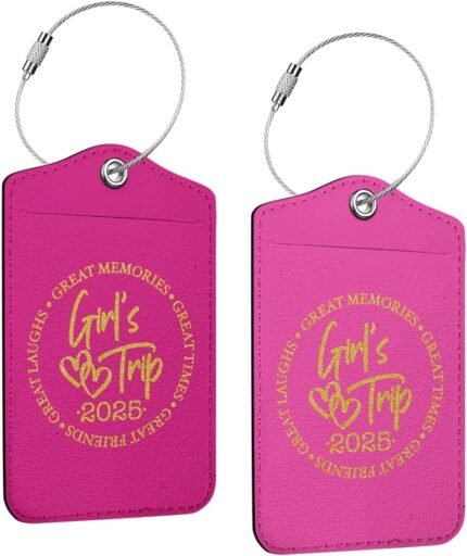 2 Pcs Girls Trip Luggage Tag, Glitter 2025 Name ID Labels with Privacy Cover and Metal Loop, Suitcase Tags Travel Tags for Luggage, Luggage Identifiers for Suitcases, Travel Accessories for Girls