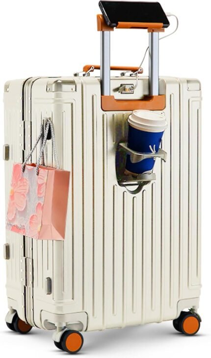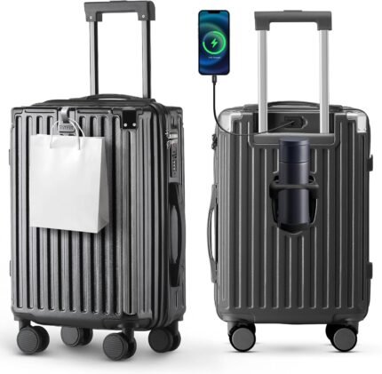 22 inch carry on luggage suitcase locks tsa approved Hardside Lightweight Suitcase with Cup Holder TSA Lock Carry On Luggage with USB Port Phone Holder suitcases with 360° 8 Double Spinner Wheels