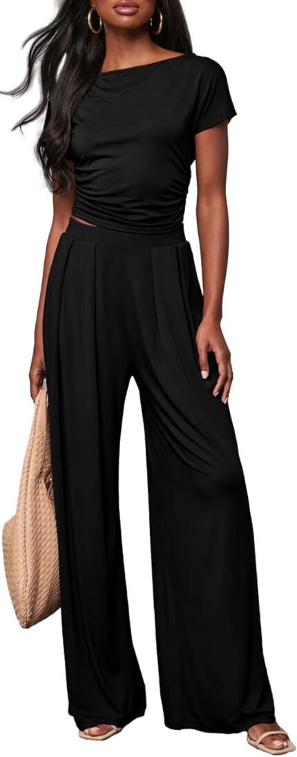 2 Piece Sets for Women Summer Crop Tops, Wide Leg Palazzo Pants Matching Lounge Sets for Women Vacation Outfits