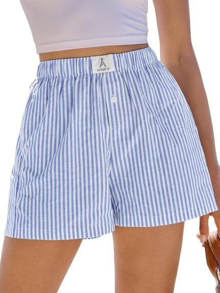 ANRABESS Boxer Shorts for Women Gingham Pajama 2025 Summer Casual Lounge Sleep Plaid Shorts Y2K Beach Bottoms
