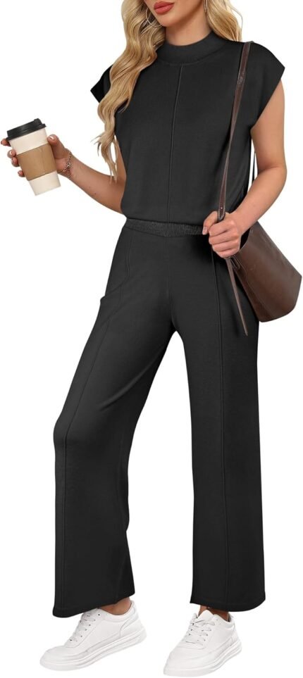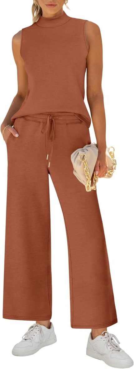 ANRABESS Women 2 Piece Outfits Mock Neck Sweater Vests Wide Leg Pants Lounge Matching Set Summer Vacation Travel Clothing
