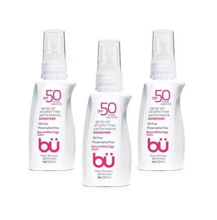 Bu Sunscreen Spray SPF 50 by Value Pack – Travel Size Organic Biodegradable Sun Block for Sensitive Skin – Oil-Free, Alcohol-Free, Non Comedogenic, Water-Resistant White Sage 3 Fl Oz