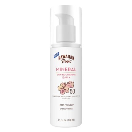 Hawaiian Tropic Skin Nourishing Milk Mineral Sunscreen Lotion SPF 50, 3.4oz | Travel Size Sunscreen Zinc Oxide, Sun Milk, Mineral Sunblock SPF 50, Oxybenzone-Free, 3.4oz