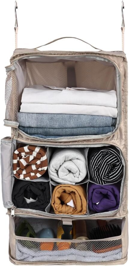 Surblue Hanging Shelves Travel Compression Packing Cube for Carry-on Luggage Suitcase Collapsible Transformable Garment Closet Organizers Large Capacity, Beige, XL