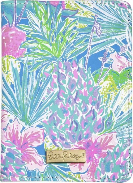 Lilly Pulitzer Vegan Leather Passport Holder, Cute Passport Cover, Travel Wallet with Credit Card Slots, Swizzle In