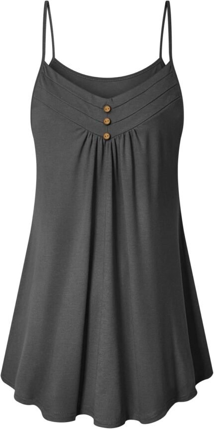 Viracy Women’s Summer Button V Neck Pleated Spaghetti Strap Camisole Tank Tops (M-3XL)