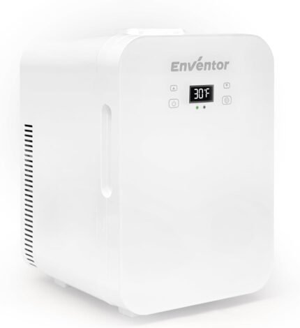 Enventor 10L Mini Refrigerator Skincare Fridge, AC 120V DC 12V Mini Portable Thermoelectric Cooler and Warmer Refrigerators with LCD Temperature Display for Cosmetics, Food, Office and Car (White)